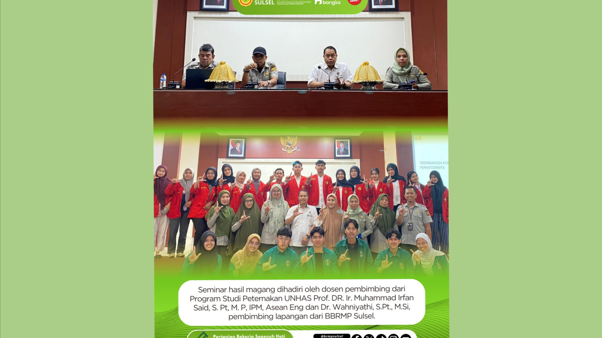 Seminar hasil magang mahasiswa peternakan Unhas di BBRMP Sulsel .
