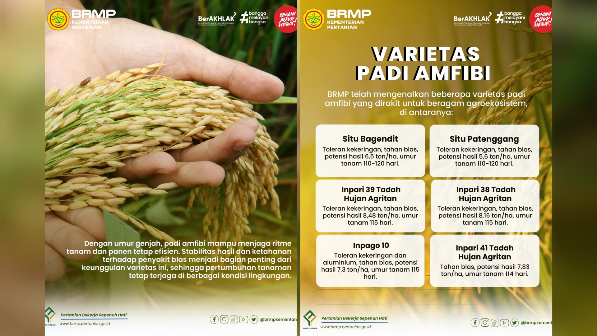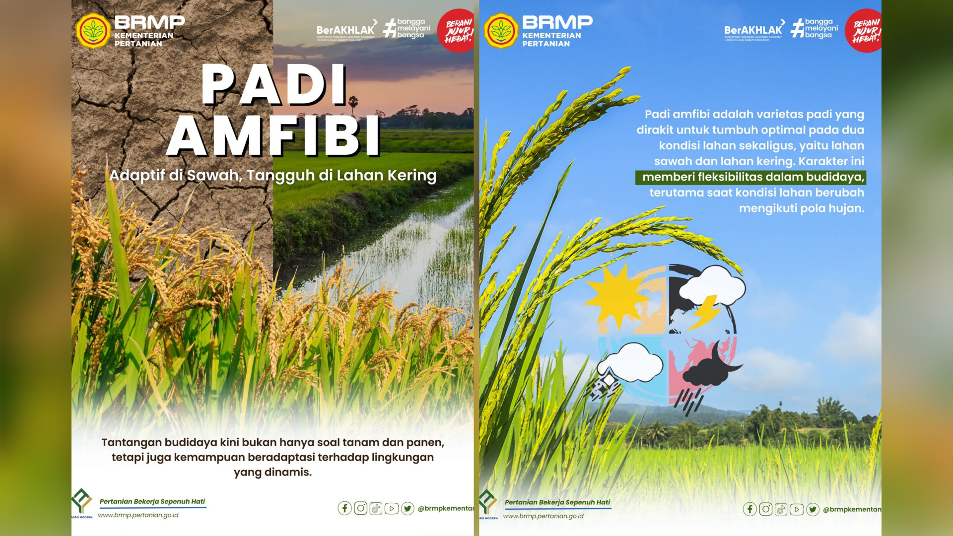 Varietas padi amfibi merupakan bibit adaptif yang fleksibel karena mampu tumbuh optimal di lahan sawah maupun lahan kering. Keunggulan ini menjaga stabilitas produksi pangan meskipun terjadi perubahan pola hujan