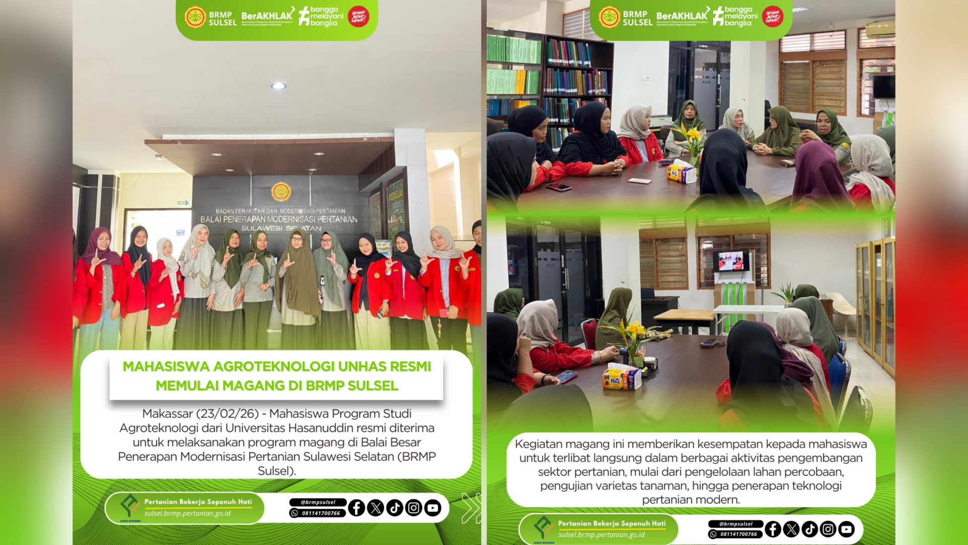 Makassar, 23/02/2026. Mahasiswa prodi Agroteknologi Unhas resmi diterima untuk melaksanakan program magang di Balai Besar Penerapan Modernisasi Pertanian (BRMP) Sulawesi selatan