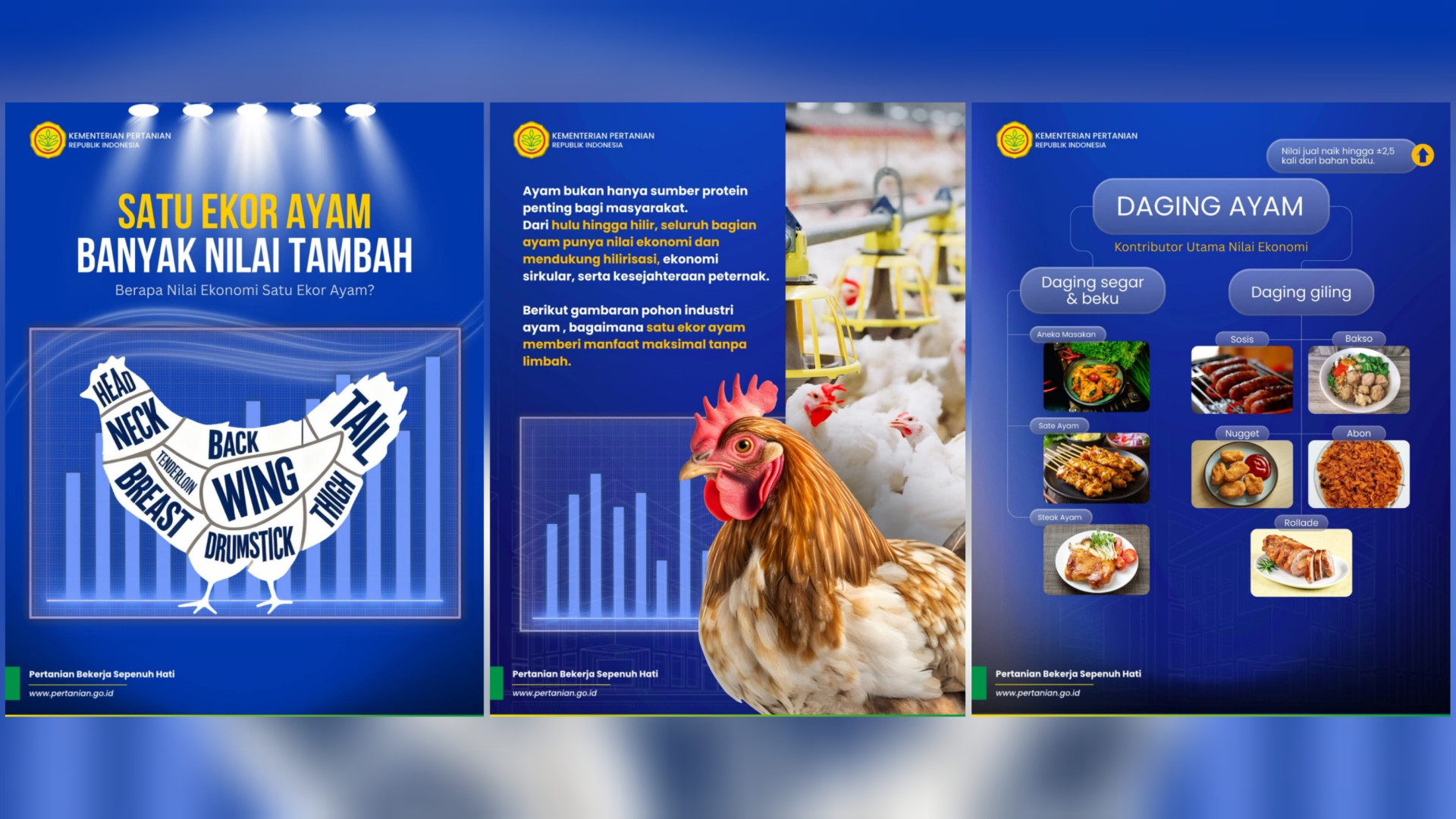 Di balik satu ekor ayam, ada rantai nilai yang panjang.Daging, telur, kulit, hingga limbahnya dapat diolah menjadi berbagai produk bernilai ekonomi. Inilah pendekatan hilirisasi terintegrasi. Lihat infografis berikut. sumber materi : @ditjen_pkh